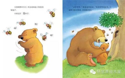 就在这时,一群蜜蜂从瓜藤上飞了下来,围住了小熊。小熊吓得脸色苍白,不知所措。蜜蜂们围绕着它飞来飞去,仿佛在说:“你这个坏蛋,敢偷我们的瓜!”小熊吓得连连后退,不小心摔了一跤。